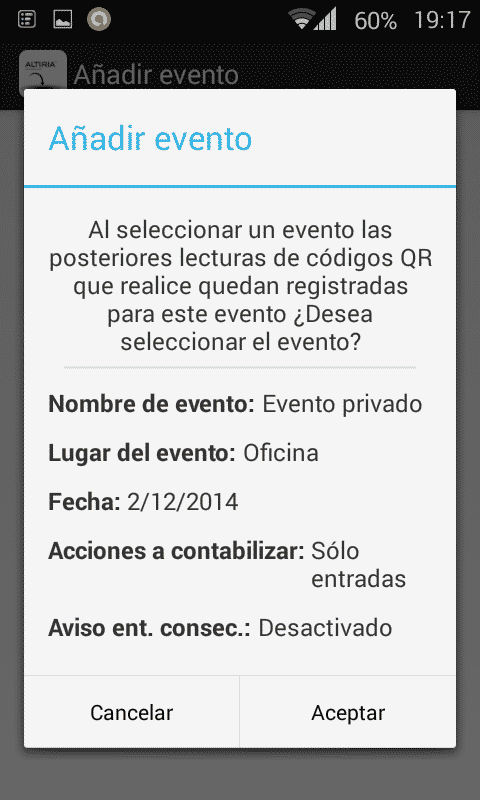 a continuación se muestran los datos de unaaplicación móvil desarrollada para controlar el acceso a recintos a través de códigos QR. No dudes en consultarnos si deseas obtener un presupuesto para tuaplicación móvil de códigos QR.