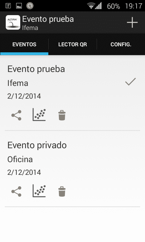 • La aplicación permite gestionar tantos eventos como se desee con la misma base de datos y también permite la carga remota de bases de datos de contactos o asistentes al evento.